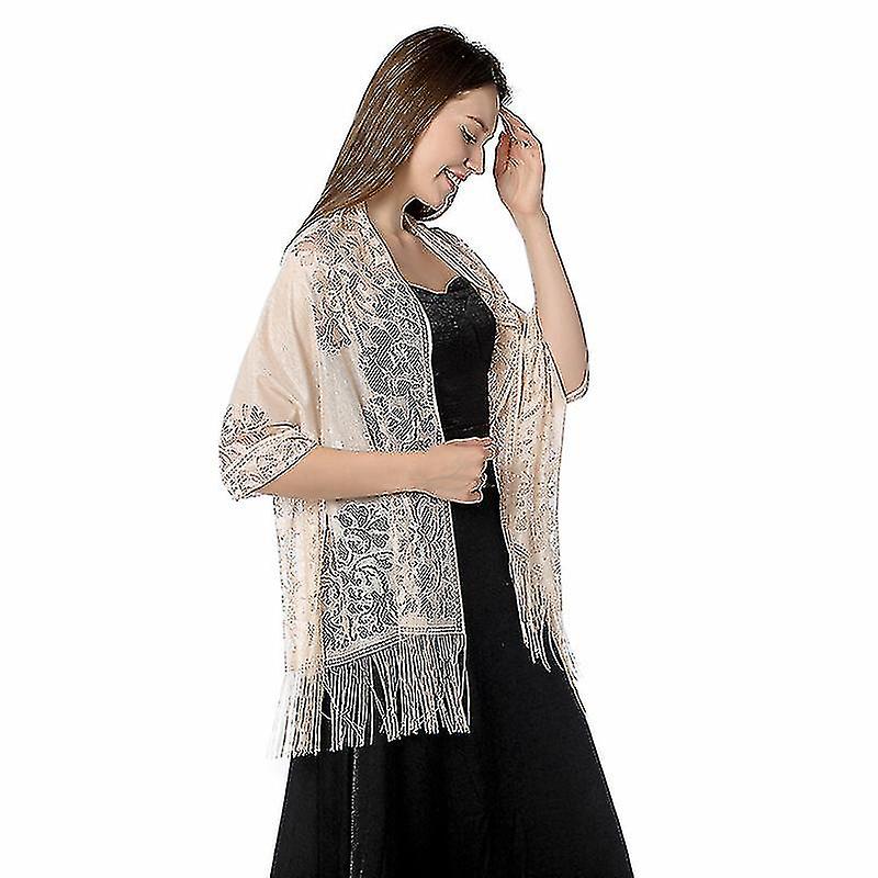 Women's Floral Lace Mesh Pashmina Party Prom Wedding Shawl Scarf With Fringe
