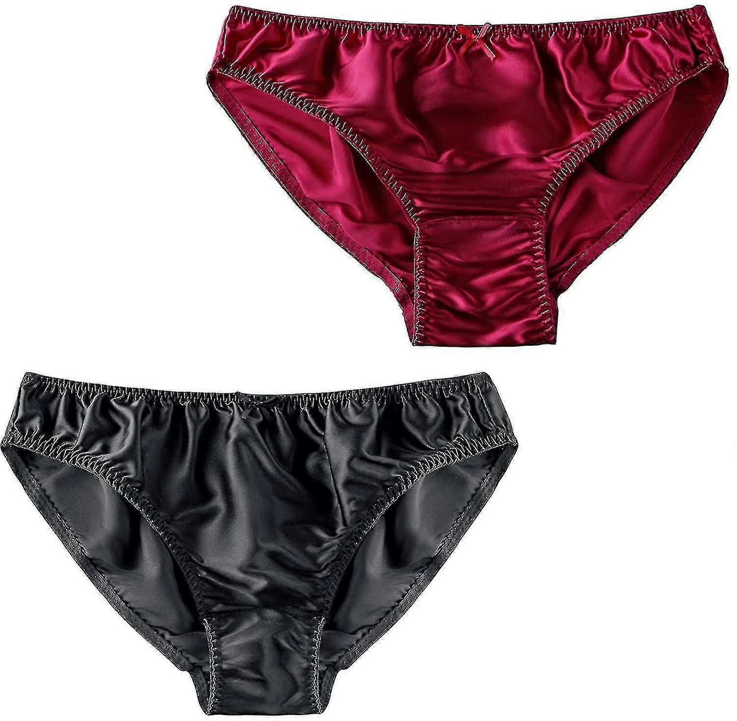 Women's Mulberry Silk Panties Silk Sexy Bikini Silk Briefs Satin Underwear 2pcs - JA