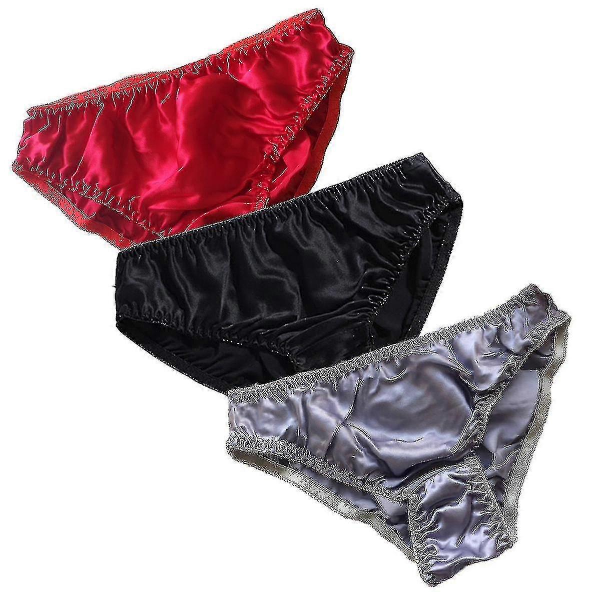 Women's Mulberry Silk Panties Sexy Bikini Satin Beachwear Swim Shorts 3 Pack stcyv A