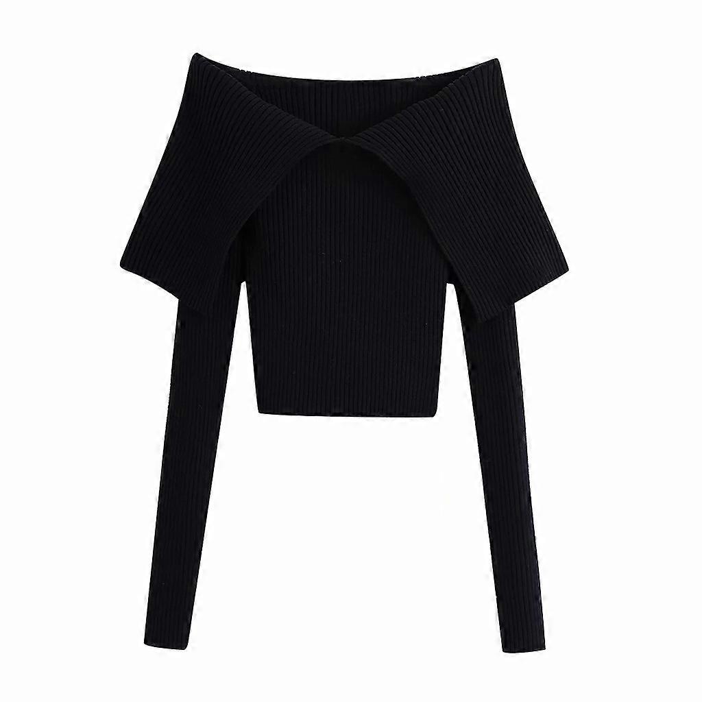 Women Autumn Long Sleeve Off Shoulder Sweater Sexy Big Lapel Collar Slash Neck Crop Top Ribbed Knit Solid Slim Jumper