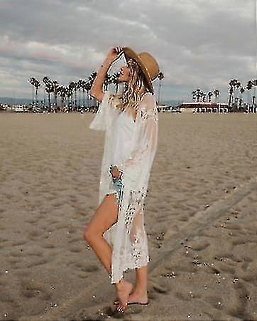 Women's Lace Cardigan Floral Crochet Sheer Beach Cover Ups Long Kimono