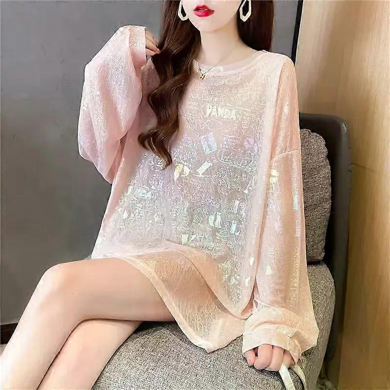 Women Spring Summer Korean Fashion Loose Printing Solid Color O-neck Long Sleeve T-Shirt Ladies Trend All-match Casual Tops