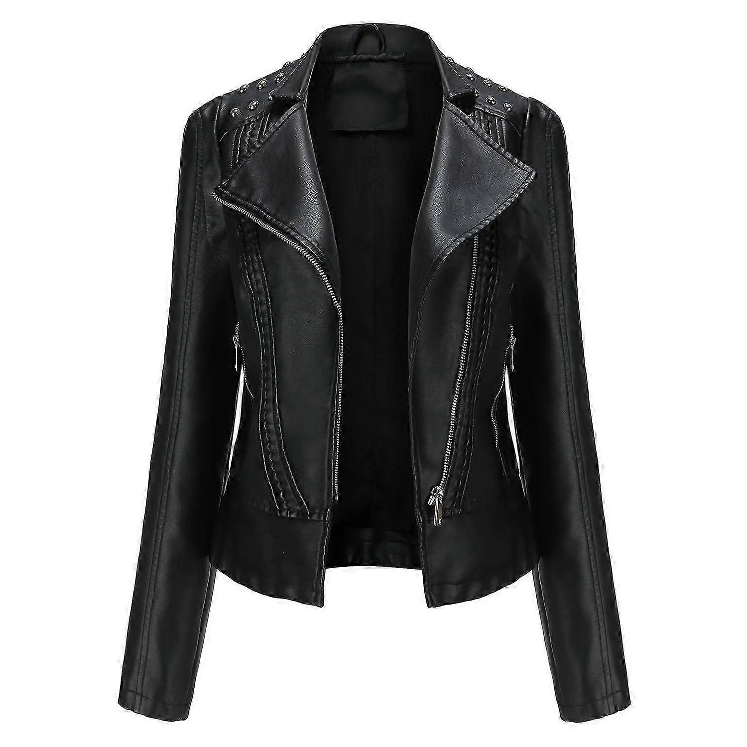 Women's Spring Short Slim Pu Leather Motorcycle Jacket