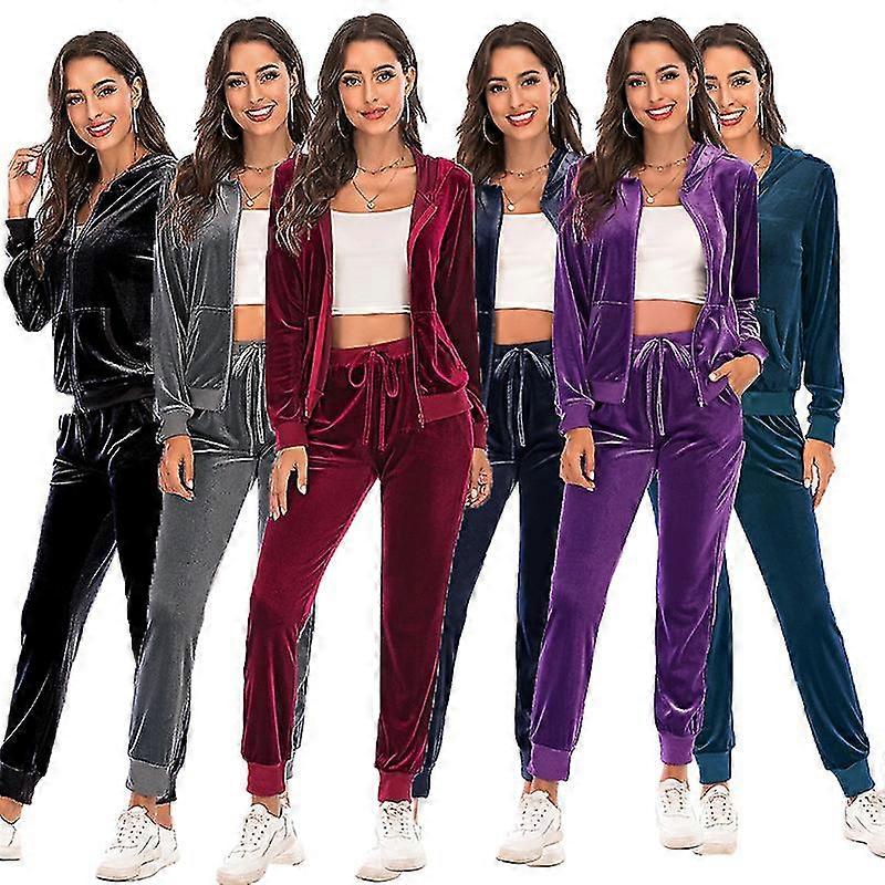 Women's Jogging Suit Velvet Warm Sportswear Hoodie Tracksuit With Pockets Zippered Gym Clothing
