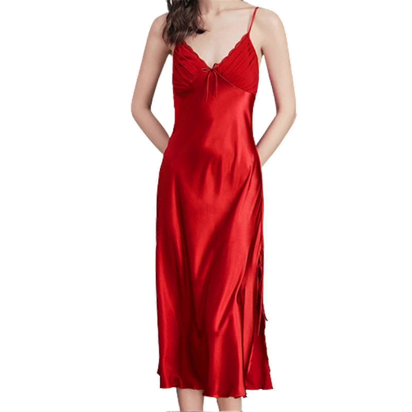 Women's Satin Silk Nightdress Spaghetti Sling Strap Sleeveless Nightgowns With Lace