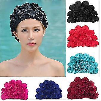 المرأة السباحة كاب جديد مرونة النايلون النسيج حماية آذان الشعر الطويل الرياضة السباحة حمام سباحة قبعة للإناث في الهواء الطلق