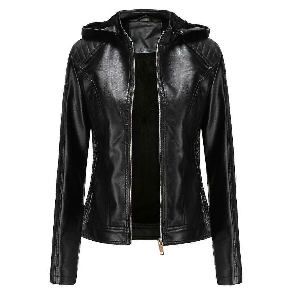 Women's Winter Warm Casual Hooded Pu Leather Jacket
