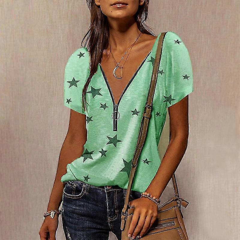 Women Summer Casual Loungewear Tunic Blouse Bohemian V Neck T Shirt Loose Zipper Pullover