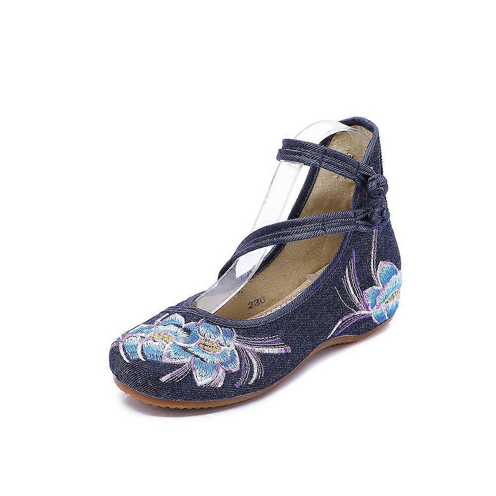 Women's Chinese Vintage Ethnic Embroidery Low Heel Flat Elevator Cheongsam Dress Shoes Energetic