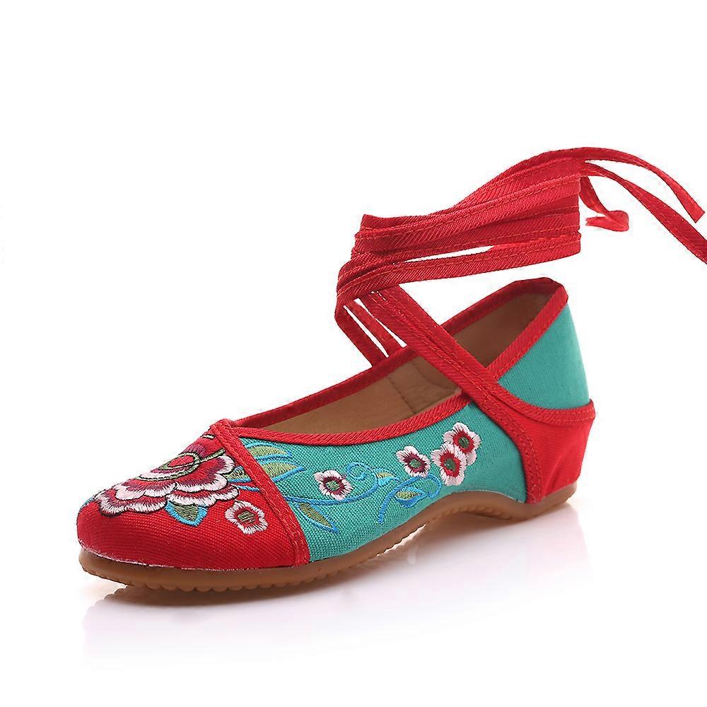 Women's Chinese Vintage Ethnic Embroidery Low Heel Flat Elevator Cheongsam Dress Shoes Dance