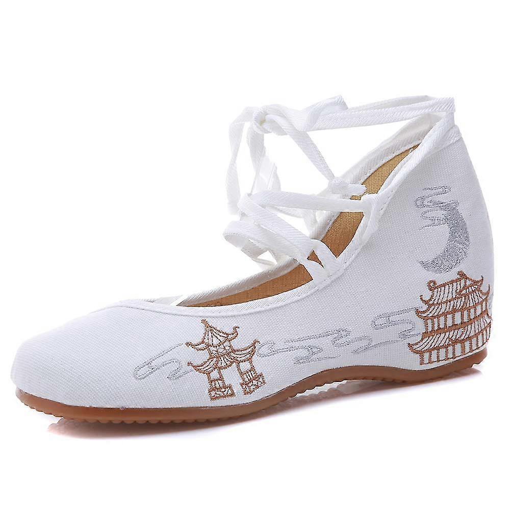 Women's Chinese Vintage Ethnic Embroidery Low Heel Flat Elevator Cheongsam Dress Shoes Moon Palace