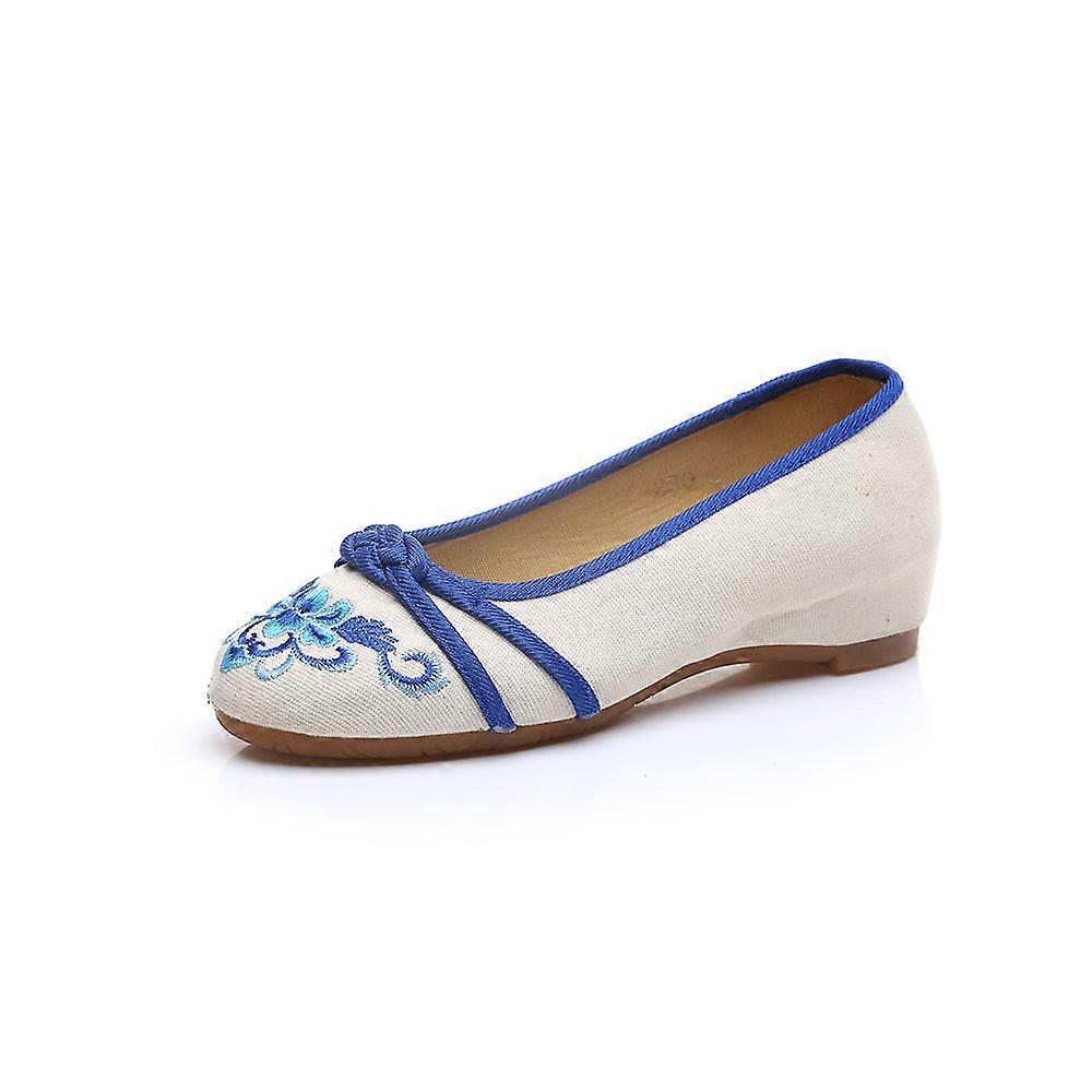 Women's Chinese Retro Ethnic Embroidery Low Heel Flat Elevator Cheongsam Dress Shoes Elegant Braided Rope