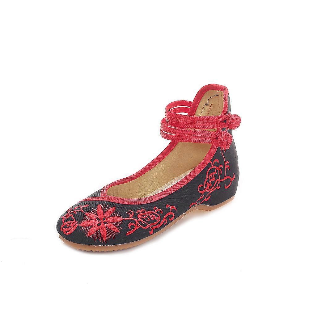 Women's Chinese Retro Ethnic Embroidered Low Heel Flat Elevator Cheongsam Dress Shoes