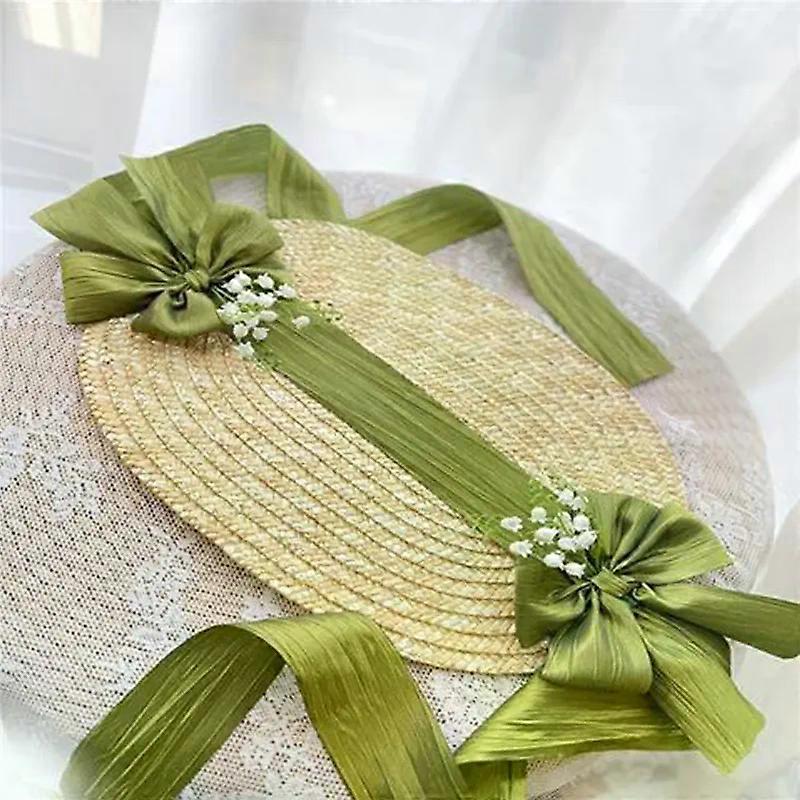 Women Victorian Wedding Tea Party Bonnet Handmade Lolita Retro Green Flower Bow Beach Sun Straw Weaving Hat French Pastoral Cap