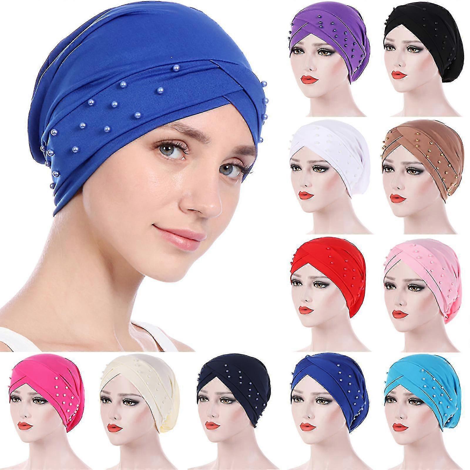 Muslim Womens Beaded Turban Cap Chemo Hat Bandana Hijab Hair Loss Head Scarf