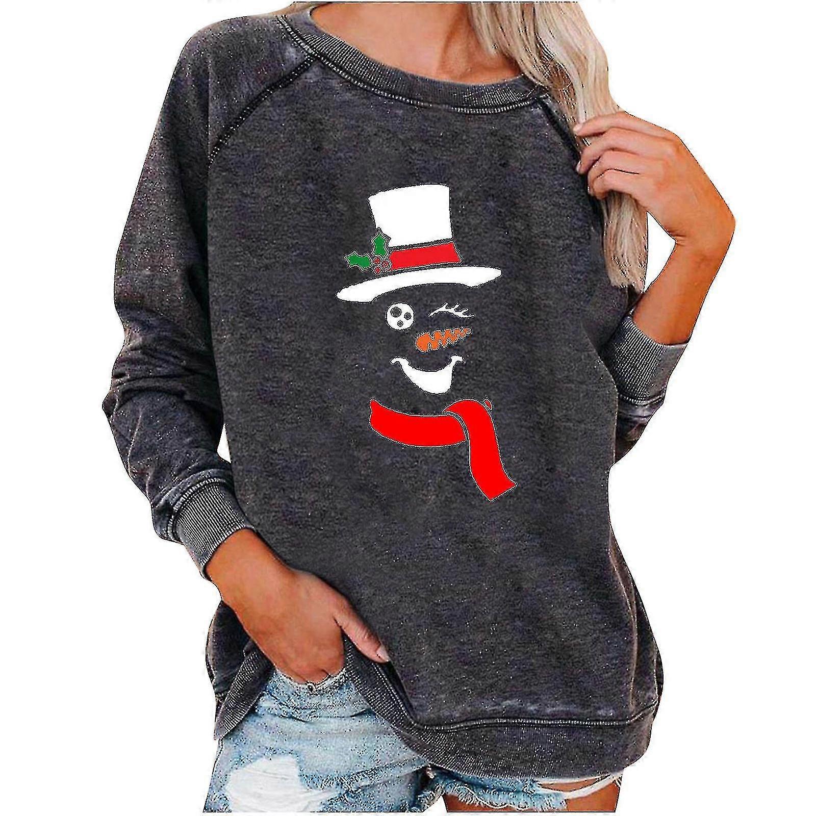 Women Printed Pulr Sweatshirt Sleeve Xmas Casual Tops Grey