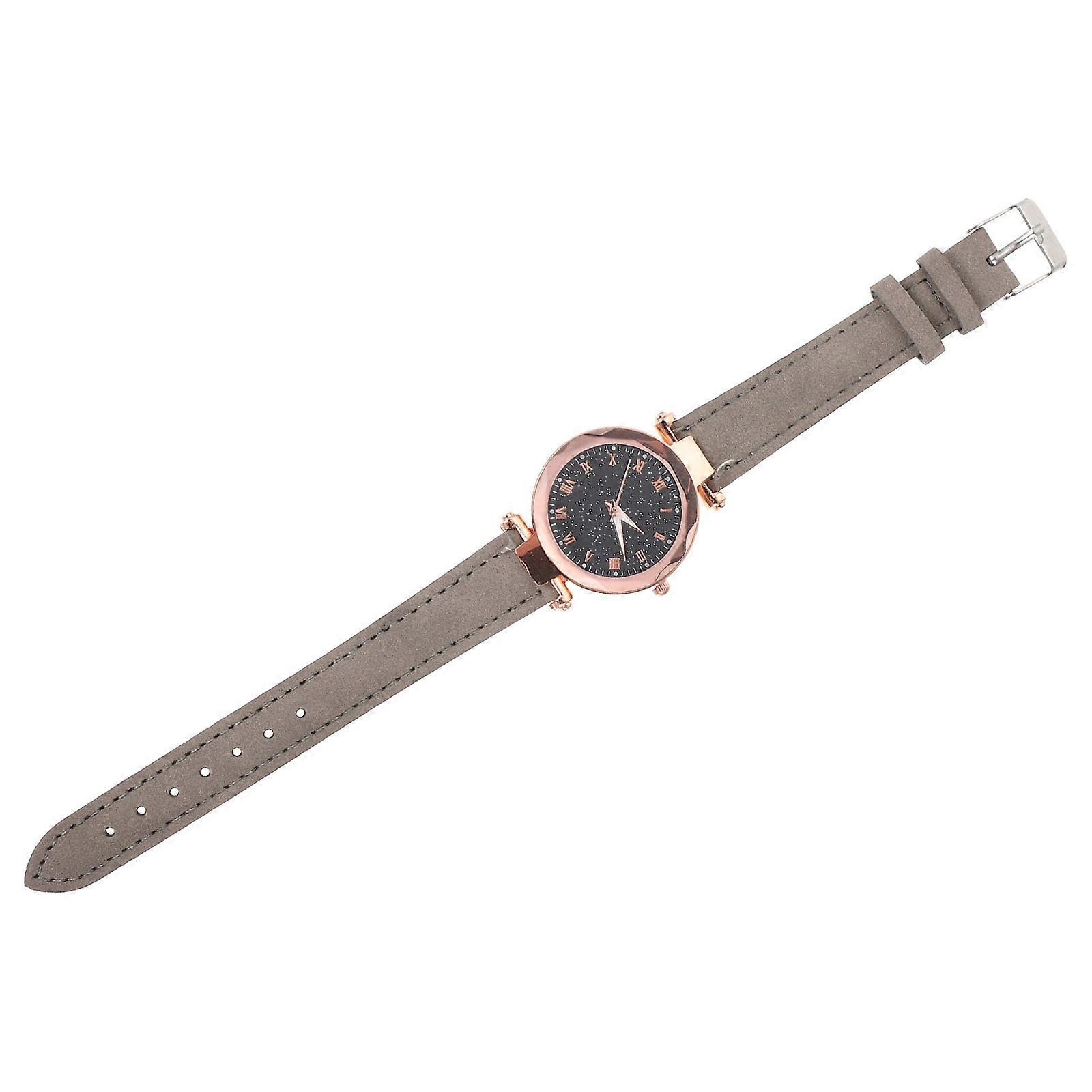 Women Wrist Watch Roman Dial Fashion Accessory Grey Leather Suitable For Gifts 1Pack