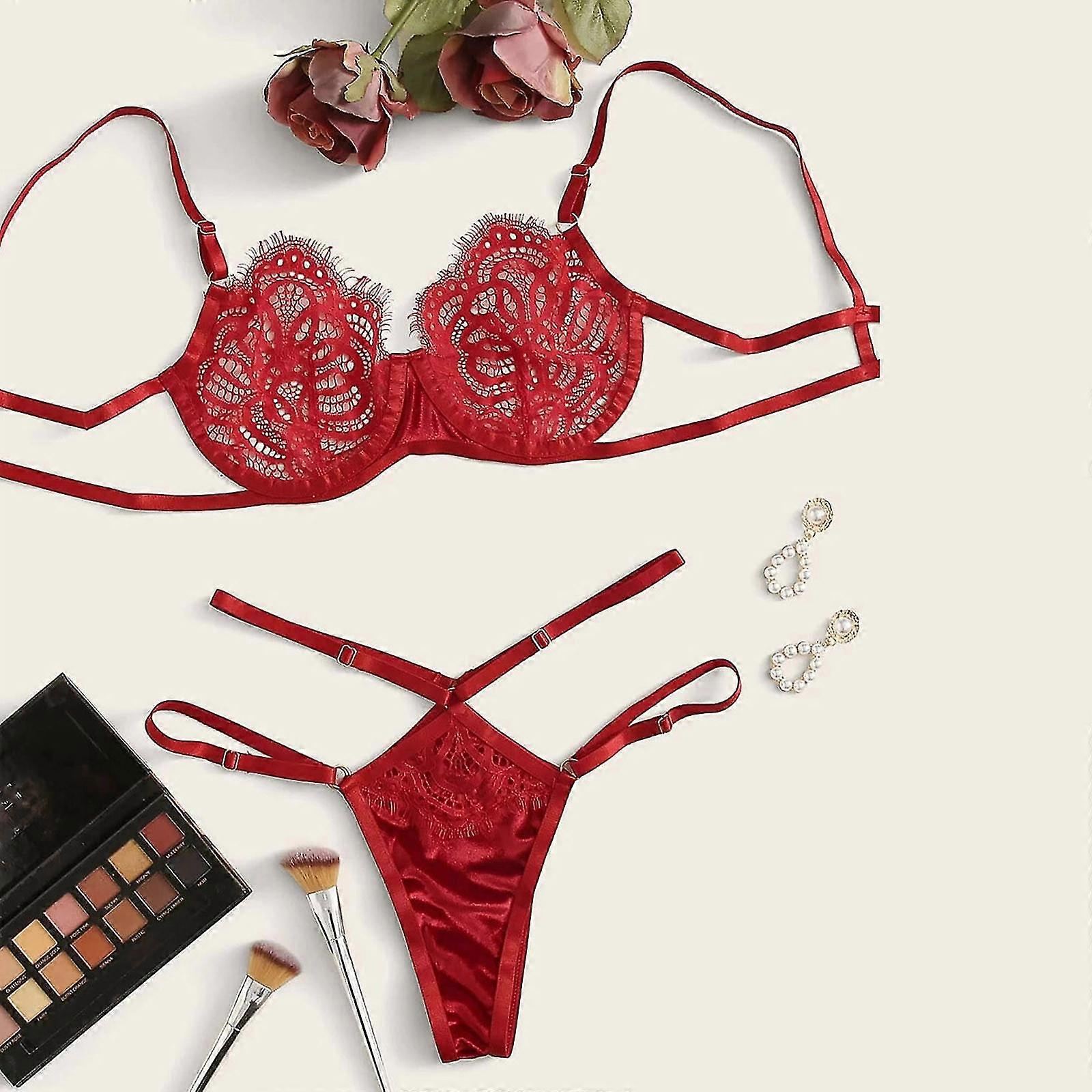 Women Lingerie Corset Lace Free Wire Intimates Sleepwear Underwear Bra+briefs