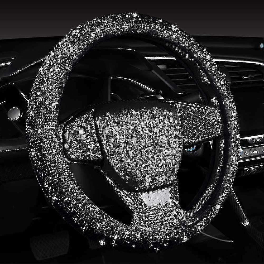Women Fashion Black Velvet Bling Steering Wheel Cover With Black Diamonds, 15 Inch Standard
