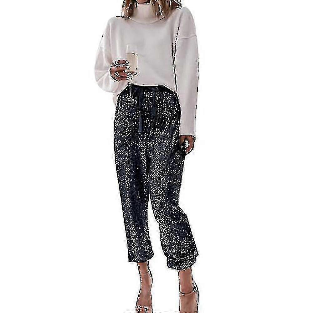 Womens Glitter Sequin Joggers Pants High Waist Stretchy Wear Shiny Trousers