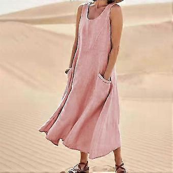 Women's Sleeveless Cotton Linen Dress Boho Style Beach Tank Dress