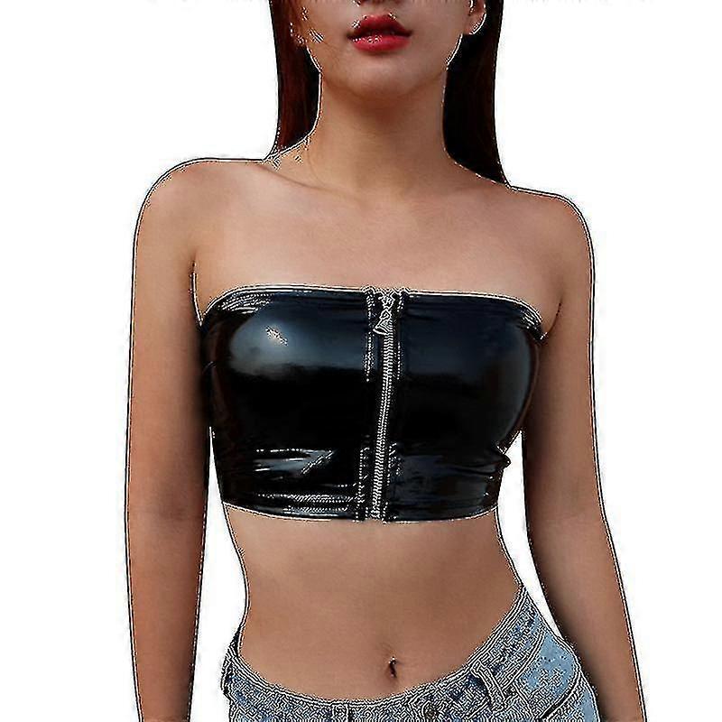 Womens Pu Leather Sleeveless Strapless Basic Sexy Tube Top