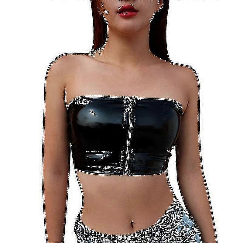 Womens Pu Leather Sleeveless Strapless Basic Sexy Tube Top
