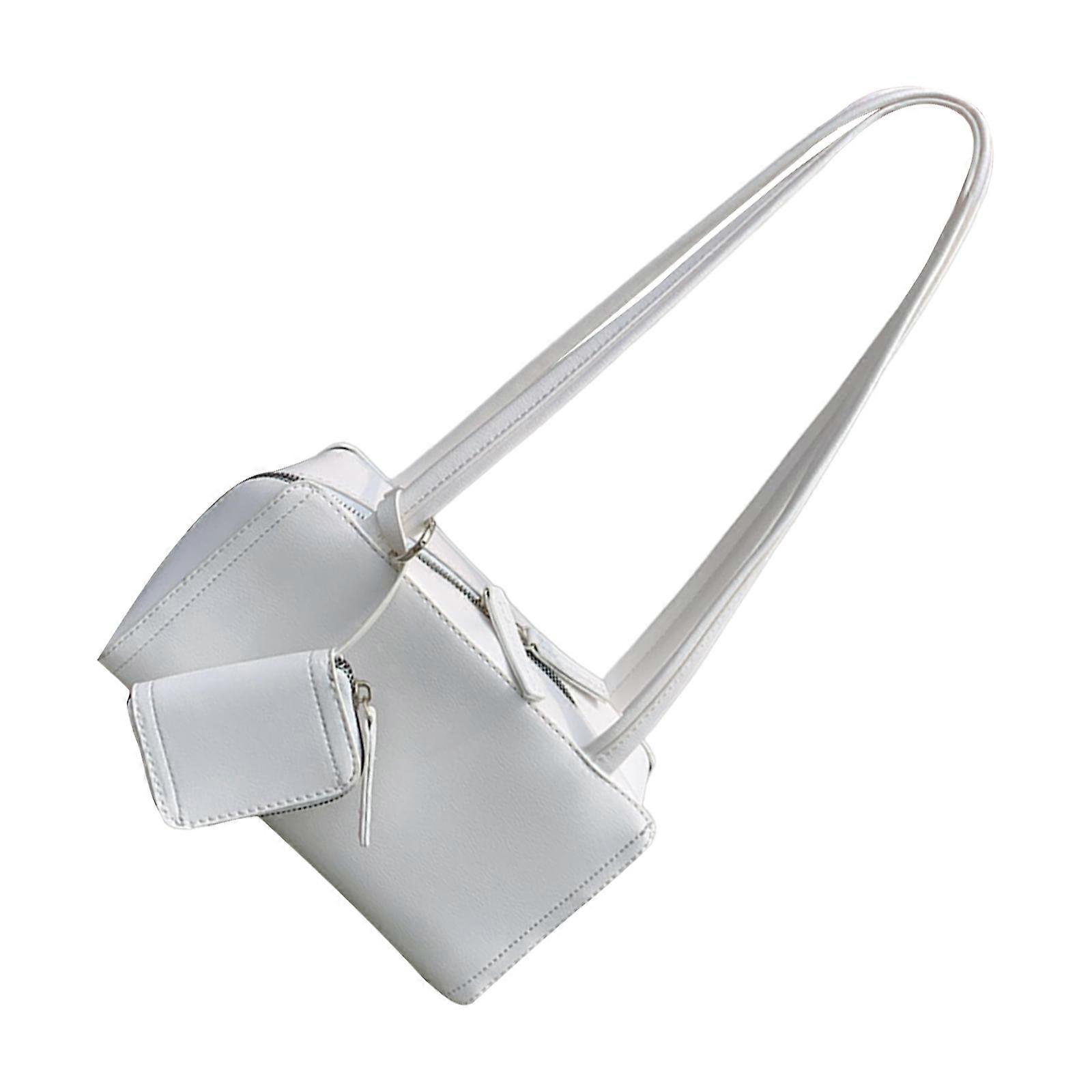 Women PU Leather Handbag Square Shoulder Bag Girls Clutch Bag Korean Style Armpit Bag for Shopping Dating Daily Travel White