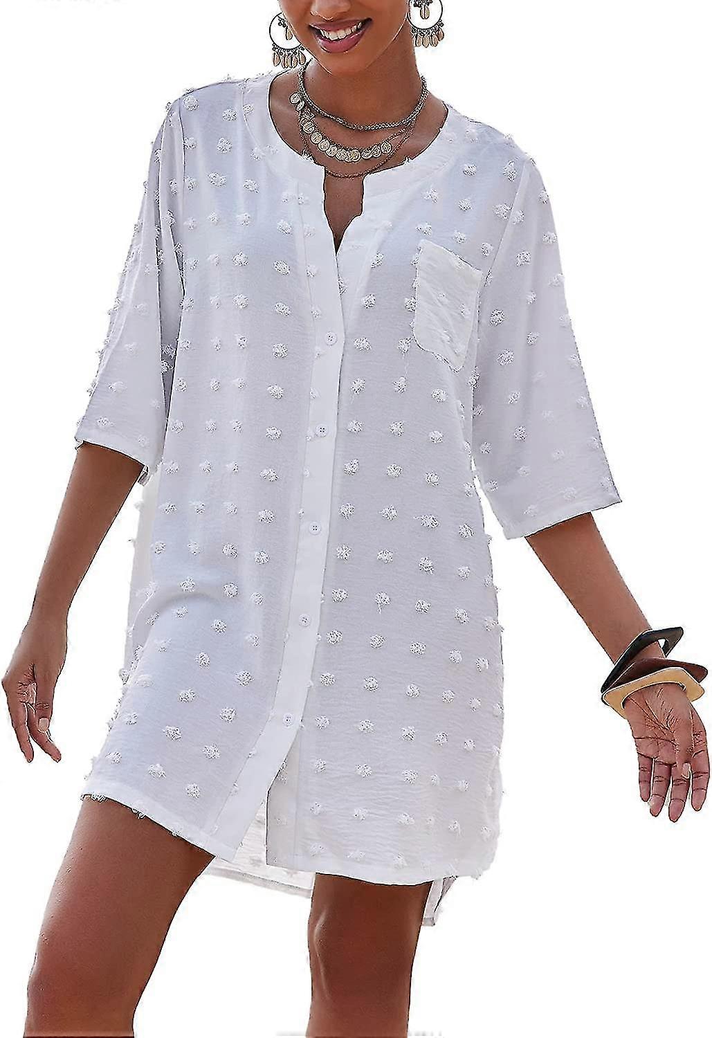 Women's Cover Up Shirt V-neck Swimsuit Beach Bikini Beachwear Button Down Bathing Suit S-3xl