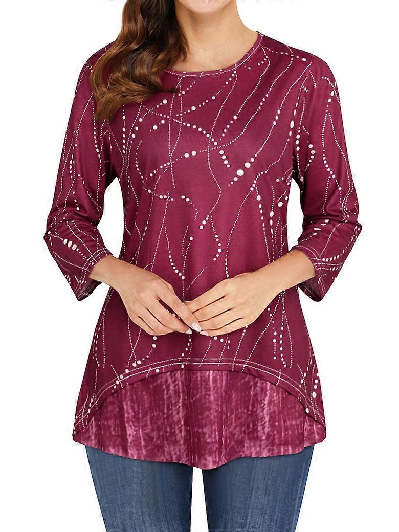 Women's Round Neck Printed Hi-low Hem Short Sleeve Top