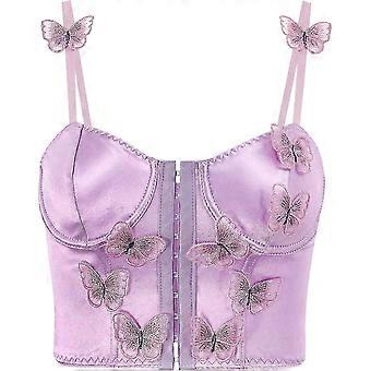Women Silky Satin Front Push Up Bustier Chic Butterfly Applique Corset Bra Vest Tight Sleeveless Tube Top