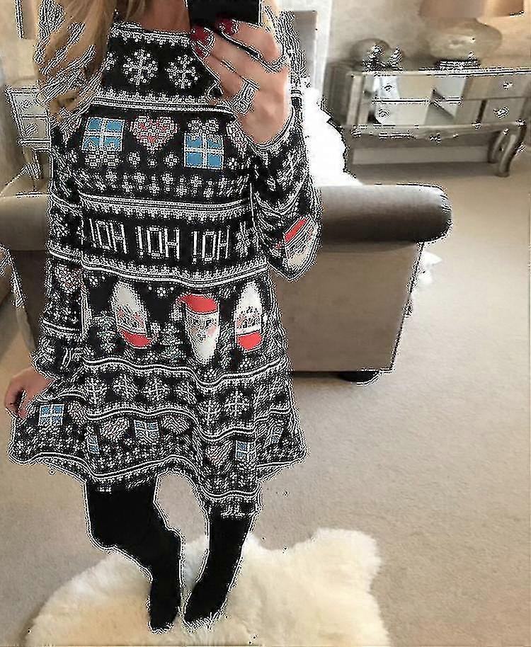Womens Party Christmas Dresses Ladies Holiday Xmas Santa Claus Swing Mini Dress Snowman