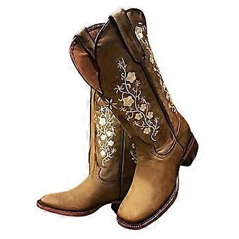 Women"s Cowboy Cowgirl Boots Modern Western Embroidered Wide Calf Square Toe Cowboy Boot For Women New-YuJia