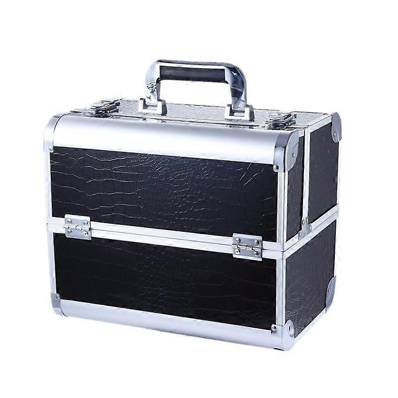 Women Aluminum Alloy Cosmetic Case Professional Multilaye Make Up Box Beauty Tattoos (Black)