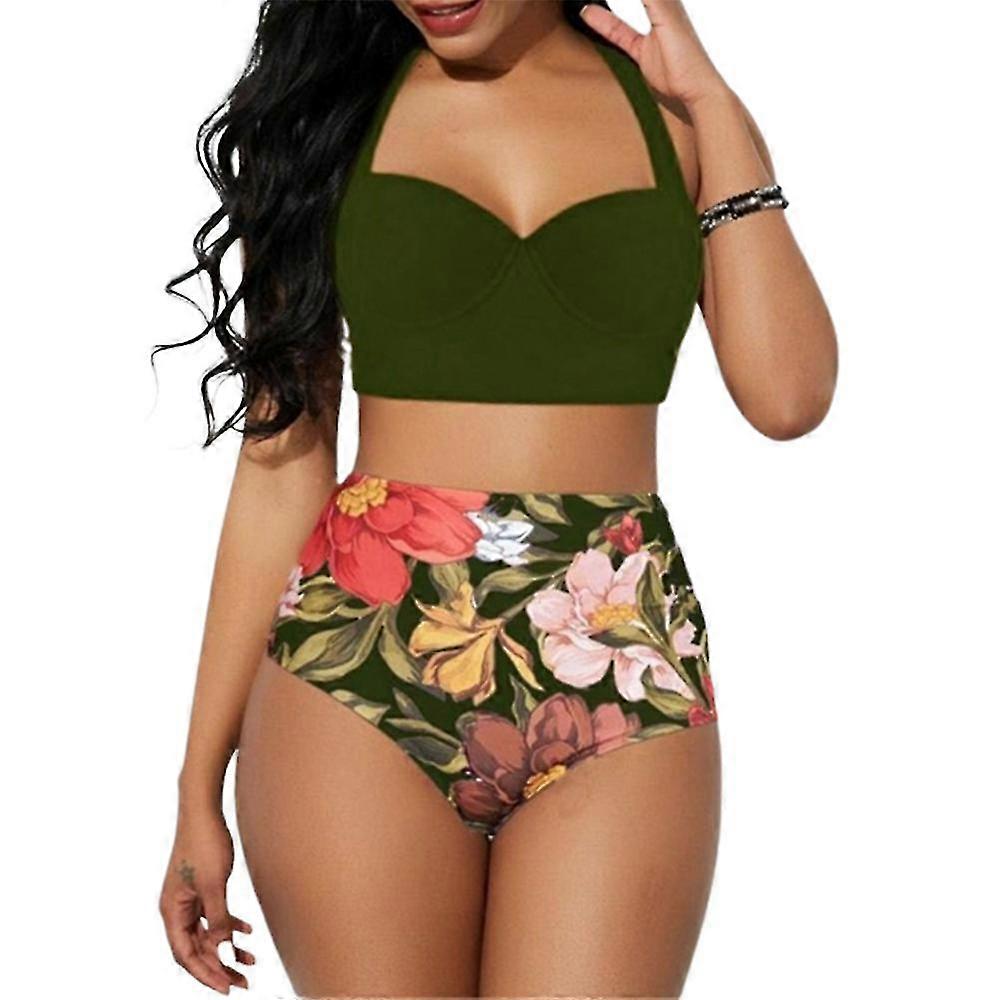 Women Print Padded Bikini Set Bra Top High Waist Briefs Swimsuit Summer Beach Holiday Sexy Swimwear Bathing Suit