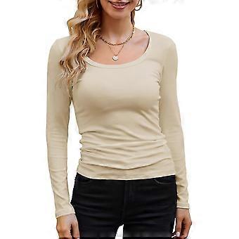 المرأة طويلة الأكمام مغرفة الرقبة مضلع متماسكة قمم عارضة ضئيلة مجهزة القمصان الأساسية