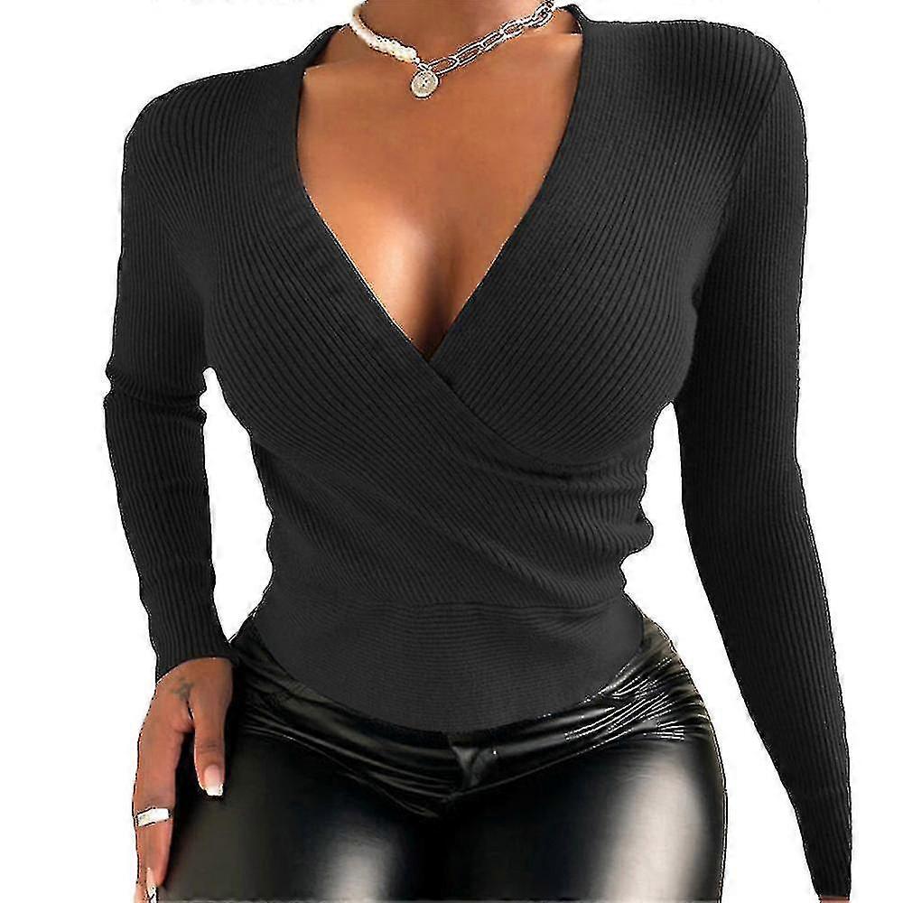 Womens Casual Stretchy Jumper Long Sleeve Sexy V-neck Shirts Tops
