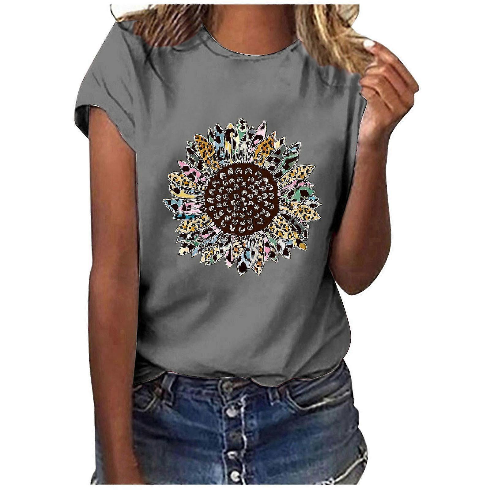Women Casual Letter Printing Short Sleeves O-neck Loose T-shirt Blouse Tops