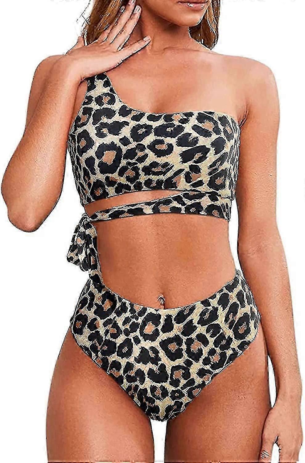 Women High Waisted Bikini Tie High Cut One Shoulder Two Piece Swimsuits