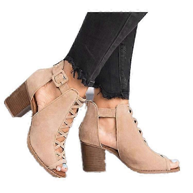 Women's Open Toe Chunky Heel Pump Sandals Evening Dress Shoes Lace Up Cut Out Shoes