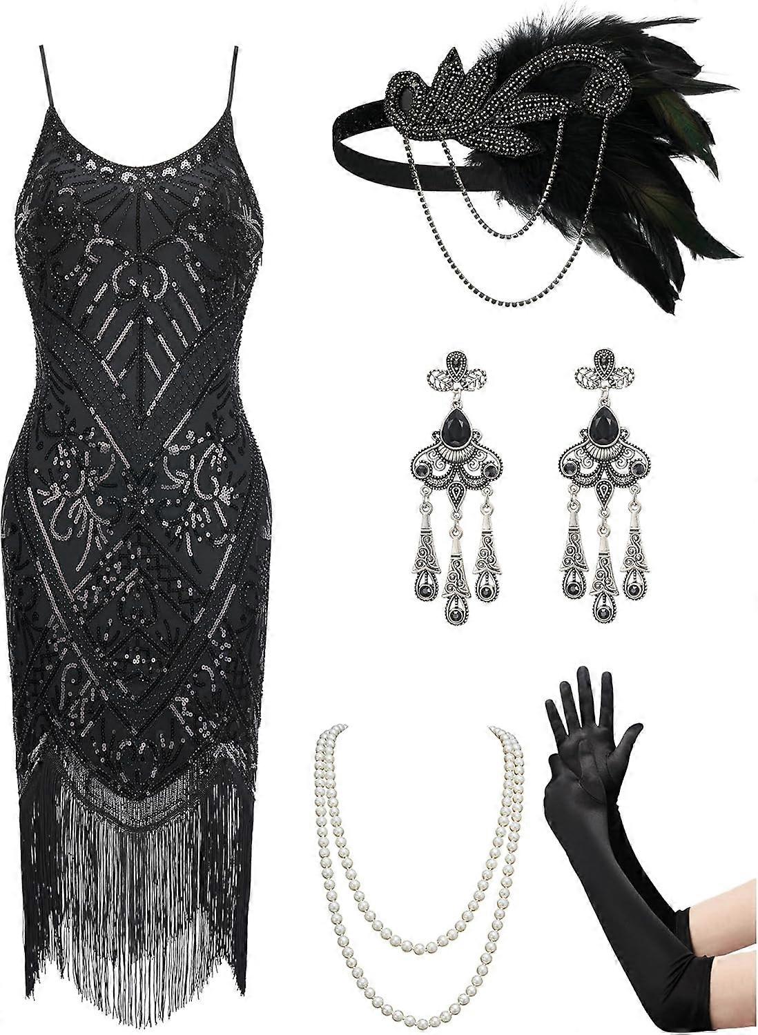 Women's Flapper Dresses 1920s,Great Gatsby Dresses Sequin Fringe Cocktail Dress Roaring 20s Dress for Harlem Nights