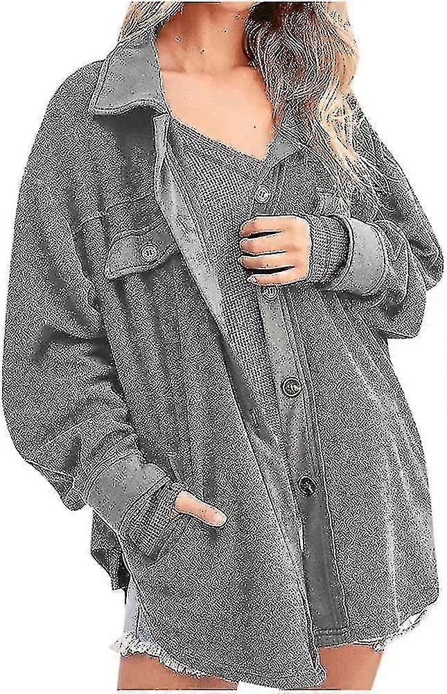 Women's Loose Fit Jacket Button Down Polar Fleece Outwear Coat With Pockets