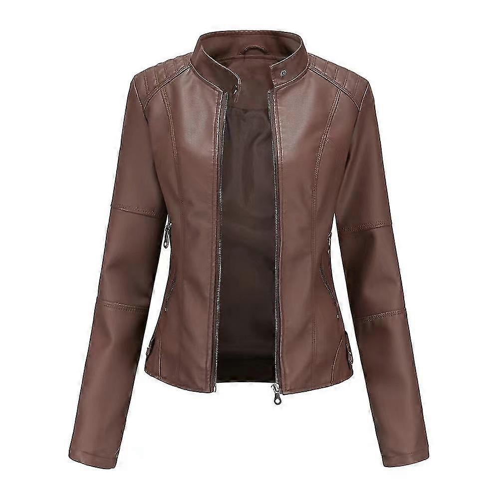 Women's Faux Leather Jacket Zipper Stand Collar Slim Fit Moto Coat