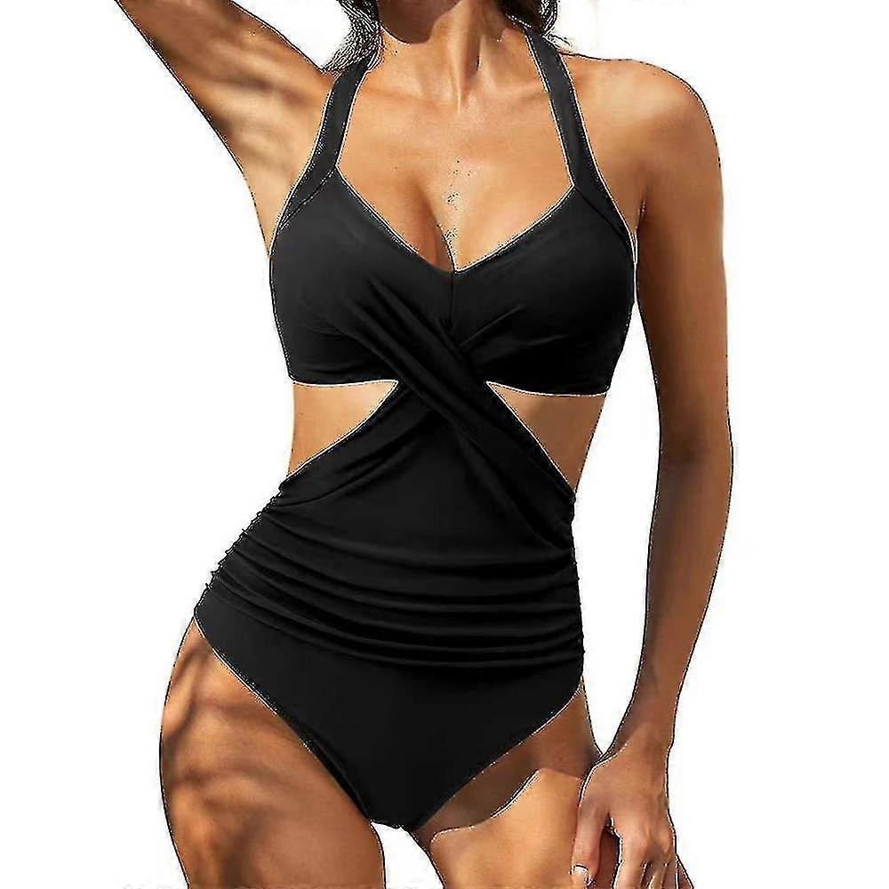Womens Leopard/plain Onepiece Swimsuit Summer Beachwear Padded Monokini Cross Back Laceup Bikini Bodysuit Swimwear