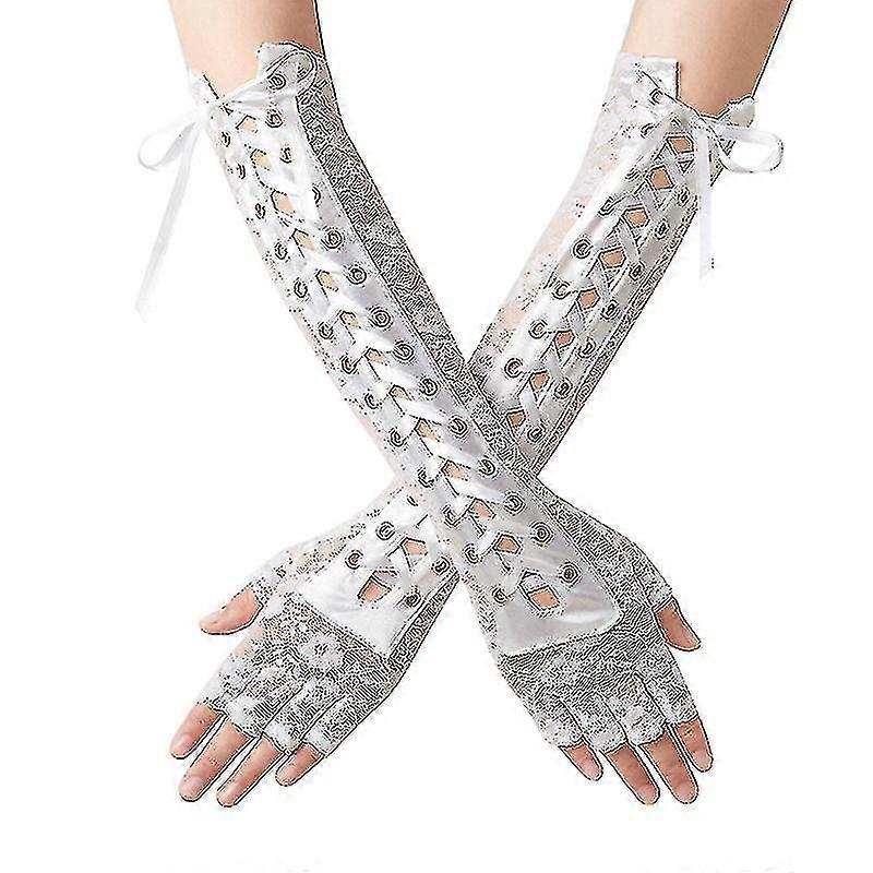 Women Sexy Lace Long Gloves Winter Elbow Half-finger Gloves Ribbon Fingerless Fishnet Mesh Etiquette Party Gothic Lolita Gloves