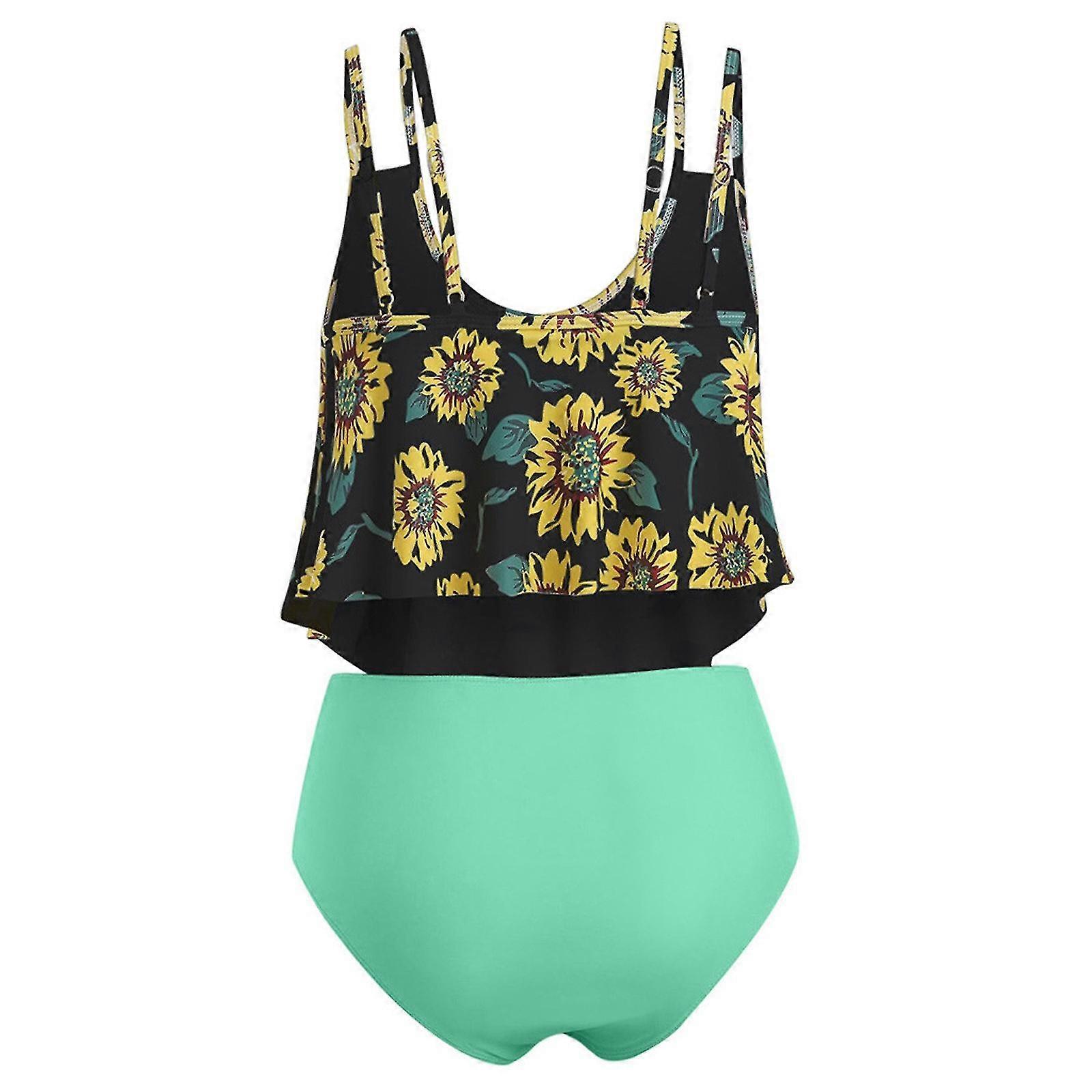 Women's Sexy High Breast Contrast Sunflower Print Split Bikini Set Two Piece Swimsuit Sets