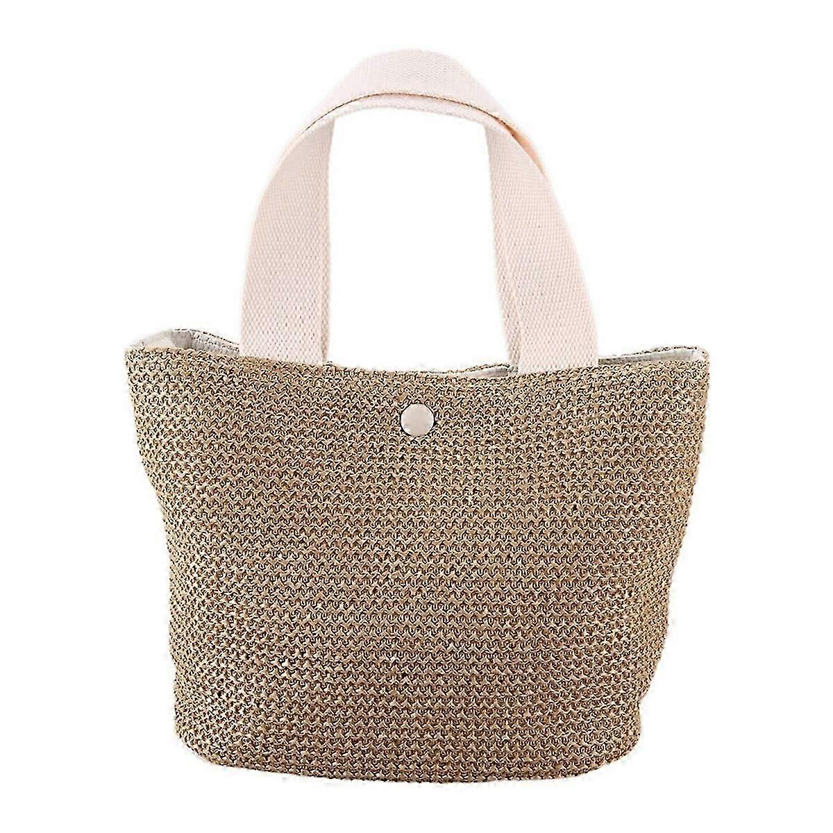 Women Braided Basket Straw Bag Hand Woven Basket Handbag,Creamy-White