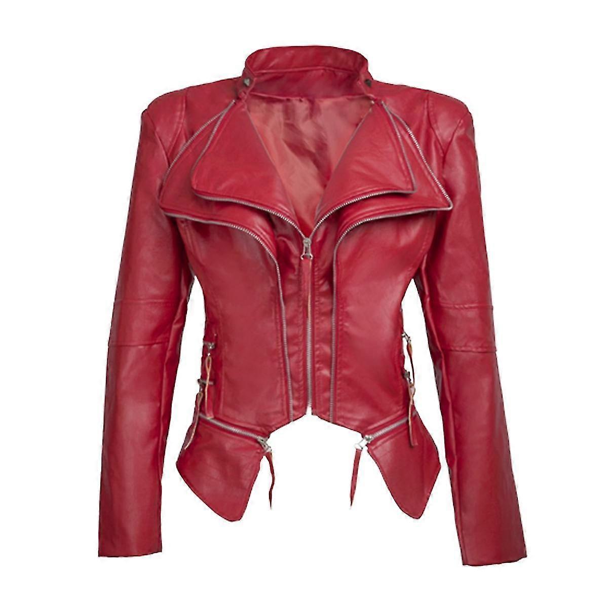 Women's Faux Leather Biker Short Jacket Casual Slim Fit