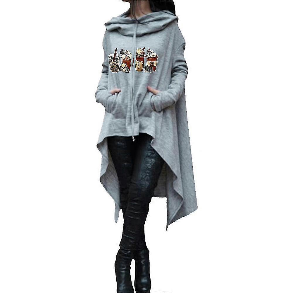 Women Halloween Print Long Sleeve Hooded Sweatshirt Irregular Hem Hoodies Tops Plus Size