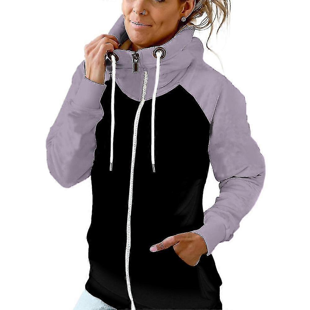 Women Colorblock Long Sleeve Casual Zip Up Jacket With Pocket Tops